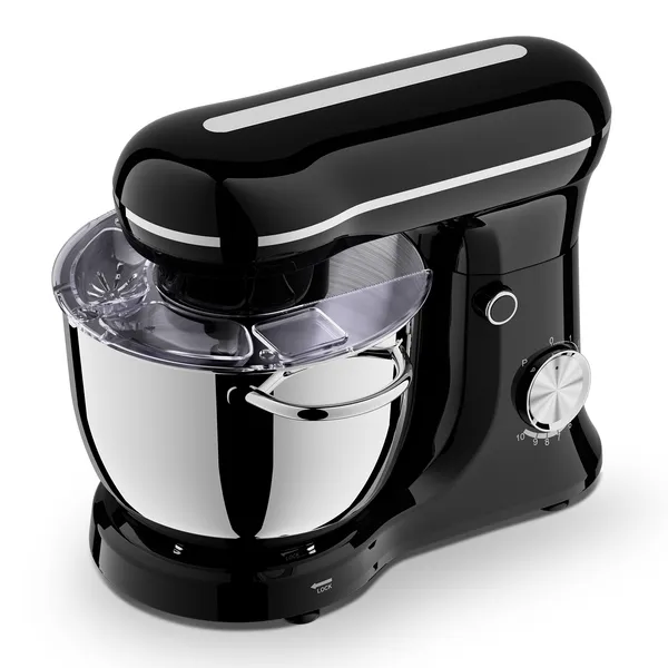 5L Electric Stand Mixer, 10 Speed Tilt-Head Food Mixer, Dough Mixer With Dishwasher Safe Stainless Steel Bowls, Dough Hook, Flat Beater, Whisk For Baking, Perfect For Family Kitchens, Black